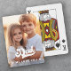 Playing cards featuring your custom photo and the text "Dad, we love you" flanked by little, white hearts.