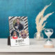 Modern Dad we love you Stripes 3 Photos Father`s Day plaque. Modern stripe pattern and 3 photos in oval frames - add 3 photos. Add your names. This personalised plaque is a perfect gift for a dad for Father`s Day, birthday or Christmas.