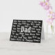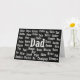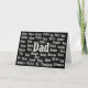 Dad text in white in foreign languages word cloud on black leather texture with eyeballs and black glasses for Dad's birthday.