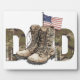 Honour the unwavering dedication and sacrifice of military dads with this heartfelt tribute. Featuring a rugged pair of military boots set against a bold camouflage-themed "DAD," this design embodies strength, service, and love. The American flag proudly waves above, symbolising patriotism and deep respect for those who serve. At its core, the touching quote, "Dad, you've always been my hero," speaks to the bond between a father and child.