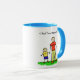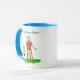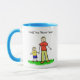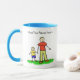 Father and son hold hands. The man's shirt read "daddy" and the little boy's shirt reads "me". Parent and child family both have blonde hair. This parent and child family picture also comes in colour as brunette or in no colour as a drawing. There is also a version with the title of "Daddy's Boy". Make a personalised Father's Day Gift mug with your own text and images using the "Customise It" button!