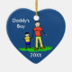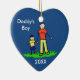 Father and son hold hands. The dad's shirt reads "daddy" and the little boy's shirt reads "me". The family is Asian with light skin. The image comes in multiple ethnic family versions. There is also a no colour drawing version too. Text notes "Daddy's Boy", but can be customised to names. Update the "20XX" to the current year. Add your personalised father and son family photograph to the back of the ornament. Personalise the father and son ornament with family names or a personal message for a special father or daddy ornament pendant gifts! You can make a custom family ornaments for a special Father's Day gift, new daddy and/or new baby, Family Reunion or other customised family art gifts!