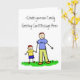 Father and son hold hands. The father's shirt read "daddy" and the little boy's shirt reads "me". The family has red hair. The image comes in multiple colour versions. There is also a no colour drawing version too Customise this note card with your personalised greeting message to make a special custom greeting cards for Father's Day, new fathers, family reunions, or other special family holidays.