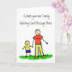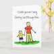 Father and son hold hands. The father's shirt read "daddy" and the little boy's shirt reads "me". The family has blonde hair. The image comes in multiple colour versions. There is also a no colour drawing version too. Customise this note card with your personalised greeting message to make a special custom greeting cards for Father's Day, new fathers, family reunions, or other special family holidays.