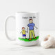 Father and son hold hands. The man's shirt read "daddy" and the little boy's shirt reads "me". The family has red hair. The image comes in multiple colour versions. There is also a no colour drawing version too. Personalise the mug with family names or a personal message for a special father or daddy mug or cup gifts! You can make a custom family mug for a special Father's Day gift, new Daddy, Family Reunion or other customised family art gifts!