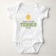 A cute brown, green and yellow tennis ball with the words Daddy's Future Tennis Buddy on kids and baby clothes, t shirts, apparel, invitations, announcements, keepsakes and more tennis merchandise that make the perfect gift for the child of a tennis coach, tennis dad or tennis player.