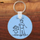 Father and daughter hold hands. The man's shirt read "daddy" and the little girl's dress reads "me". Add your own names for a special father or daddy gift! This parent and child family picture also comes in colour as a brunette or blonde family. There is also a version with the title of "Daddy's Girl". Make a personalised family keychain with your own text and images using the "Customise It" button!