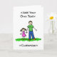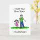Father and daughter hold hands. The father's shirt read "daddy" and the daughter's shirt reads "me". The figures both have brunette hair. You can add your own text to create a custom product with your own family names for daddy and daughter or just add your own title of "Daddy's Little Girl". Choose your font styles and colours for a personalised product that makes a great Father's Day or birthday gift.