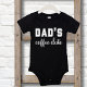 Fun bodysuit for baby, with the phrase "Dad's coffee date". Makes a humourous gift for baby showers or new parents, and trendy clothing for the little one!