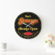 Dad's Garage Red Yellow Neon Look Date Name Black Large Clock