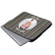This laptop sleeve looks exactly as it does in picture. I actually thought is was too small until I put my laptop in it. It's a bit snug, but it fits. Figure it will stretch a bit, hopefully seams hold. Them seem good for now. I didn't have any personalization done, looks great as is.