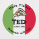 Design in a pizzeria logo style, with the colours of the Italian flag and customisable texts. Perfect to honour your country, grandfather, or whoever else is dear to you!