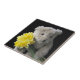 cute, well-loved generic bear holding a bouquet of fresh daffodils to melt your heart