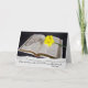 Yellow daffodil and glasses on open Holy Bible with Scripture verse for sympathy