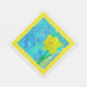 This paper napkin flaunts a digital collage made up of several layers of paintings, textures and scans. The sunny daffodil "pops" off the blue backdrop. Cheerful yellow and white polka dots form a frame as a finishing touch.