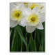 White and yellow daffodils stand out against dark green folliage.