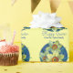 Daffodil/narcissus watercolor pattern art wrapping gift paper. Fine art daffodils painting wrapping gift paper in yellow and blue. Great for Easter gifts. Personalise with your own greeting and name. Uniquely painted in watercolor and goauche on dark paper by Sarah Trett.