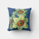 Floral fine art pillow. Daffodils from original artwork on coloured paper in gouache by Sarah Trett. Vibrant print to bring a touch of spring colour to a living room or bedroom.