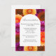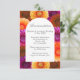 Autumn dahlia floral blooms in fall yellow, orange, red and purple colours with text under a trendy archway
