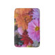Brighten the day with this beautiful bath mat which feature a collection of waterlily dahlia flowers in a colourful abstract pattern of red, orange, pink, yellow, white and mauve. A great idea for gardeners!