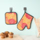 Dahlia Flowers, Pattern Of Flowers, Orange Dahlia Oven Mitt & Pot Holder Set