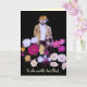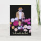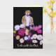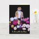 This whimsical, artistic Fathers Day card features a mystical flower gardener lost in his dahlias. He is dressed in shades of brown, gold, white and tan and sports a hat for shade, a beard and a moustache. The flowers are magenta, pink, yellow, lavender and purple and form an abstract pattern swirling around him. All text can be customised or removed.