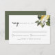 This wedding RSVP card features watercolor tropical citrus lemon fruits with white florals and a whimsical script font. Edit all wording for your event.