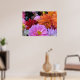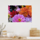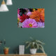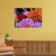 Brighten the day with this glorious poster featuring a collection of waterlily dahlia blossoms in a colourful design of pink, yellow, white and mauve.