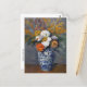 A postcard with the still life painting by the French Post-Impressionist artist Paul Cézanne (1839-1906), Dahlias in a Delft Vase (1873). An exquisite artistic portrayal featuring a porcelain vase in blue and white, adorned with orange and white dahlia flowers