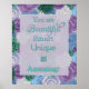 Give a gift of daily affirmation to yourself or a loved one - a beautiful piece of art to remind you every day that you are beautiful, smart, unique, and amazing, with flowers in shades of blue, purple, and green.