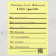 Keep your customers informed and engaged with this professional Daily Specials Flyer Template. Featuring a warm, yellow aesthetic and a clean, organized layout, this flyer is designed for the modern restaurant, cafe, or deli that values both style and functionality.
