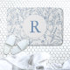 Dainty Blue & White Floral Monogram Personalised Bath Mat