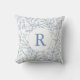 Dainty Blue & White French Floral Monogram Throw Pillow