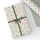 Delicate wrapping paper design with pattern that has hand painted watercolor small pink flowers and green foliage.