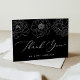 Elegant floral thank you card featuring a top border of dainty white flowers with a black background. "Thank You" is displayed in a white modern script with your name shown below. The inside of the card features your message in black lettering. The floral thank you card is perfect to use for weddings, bridal showers, baby showers, birthdays, and more!
