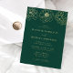 Elegant floral wedding invitations featuring a top border of dainty gold foil flowers with a green background. Personalise the foil floral wedding invitations with your names and wedding details in gold foil lettering with calligraphy script accents. Designed to coordinate with our Dainty Floral wedding collection.
