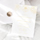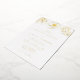 Elegant floral wedding invitations featuring a top border of dainty gold foil flowers with a white background. Personalise the foil floral wedding invitations with your names and wedding details in gold foil lettering with calligraphy script accents. Designed to coordinate with our Dainty Floral wedding collection.