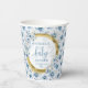 Dainty pastel blue flowers gold personalised baby paper cups