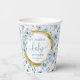 Dainty pastel blue flowers gold personalised baby paper cups