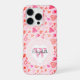 Dainty Pink Heart Pattern & Monogram White Heart iPhone Case
