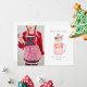 Illustration of a red and pink mason jar milkshake topped with sprinkles, peppermint candy, whipped cream, candy cane, and Christmas tree shaped Christmas cookie. Text says, "Dairy Christmas" Personalise the name, year, and photo.