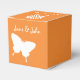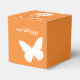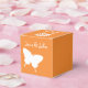 Give your guests, bridesmaids, groomsmen, or anyone else a special treat with these customisable favour boxes featuring a bright orange background with a white swallowtail butterfly, monarch butterfly, and daisy on the front, back, and top of the box. Each of these sides also features some sample text that you can customise for your own spring-themed wedding or event. Be sure to check out the other products in the Daisies and Butterflies in Orange set to create a truly coordinated look for your event.