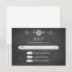 Dark grey rustic chalkboard style wedding RSVP card with daisy and curly flourishes at top, cute ladybug and mixed customisable typography by katz_d_zynes | Part of katzdzynes' Daisies and Ladybugs Rustic Chalkboard Wedding collection >> https://www.zazzle.com/collections/119167309747130479