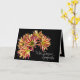 Close-up photograph of a beautiful cluster of red and yellow daisy flowers against a black background. The flowers cover the front of this card which can be used as a thank you card, a birthday card, or any other card of your choice. Customise it with your text and/or pictures to make it one-of-a-kind!