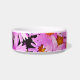 This is a heavy, durable bowl decorated with Tibbies of many colors, the perfect size for hungry/thirsty Tibs. The design is interesting and printing clear.