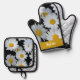 Daisies Floral Pattern Custom Name Oven Mitt & Pot Holder Set