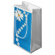 Gift bag shown in a solid colour of white with a cute blue daisies print. Customise this item or buy as is.