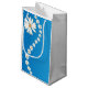 Gift bag shown in a solid colour of white with a cute blue daisies print.