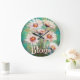 Daisies Impressionistic Floral Teal Personalised Large Clock