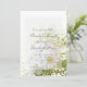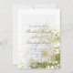 Adorable and editable wedding design with a beautiful fresh spring flower bouquet with tiny daisies and green blossoms in the background.